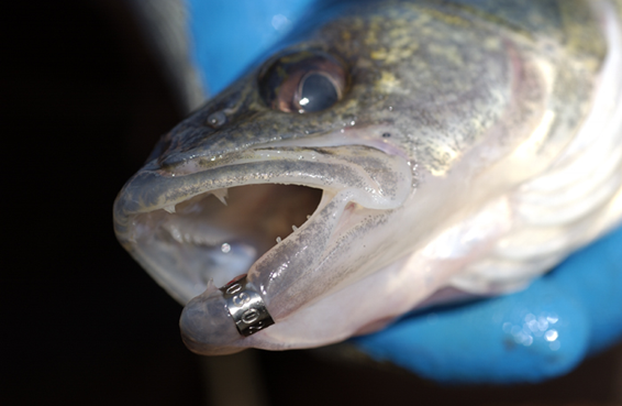 Jaw tags are metal tags attached to the jaw of the fish. Fish caught with a jaw tag should be reported by contacting the Michigan DNR or the Ohio DNR